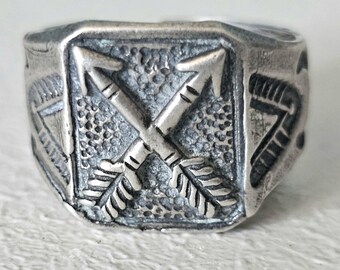 Tufa Cast Geometric Silver Vintage Sterling Man Ring Size 12 1/2 JR 114